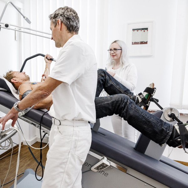 Bei dem Belastungs-EKG oder der Ergometrie fährt der Patient auf einem Ergometer, während kontinuierlich ein EKG abgeleitet und der Blutdruck gemessen wird. Die Belastung wird dabei alle 2 Minuten erhöht, bis eine bestimmte Puls-Grenze erreicht bzw. der Patient erschöpft ist. So kann man die Leistungsfähigkeit des Herzens beurteilen, sowie Durchblutungsstörungen und Herzrhythmusstörungen erkennen.